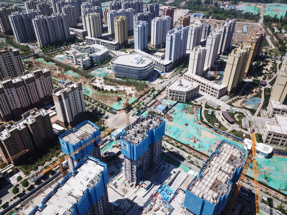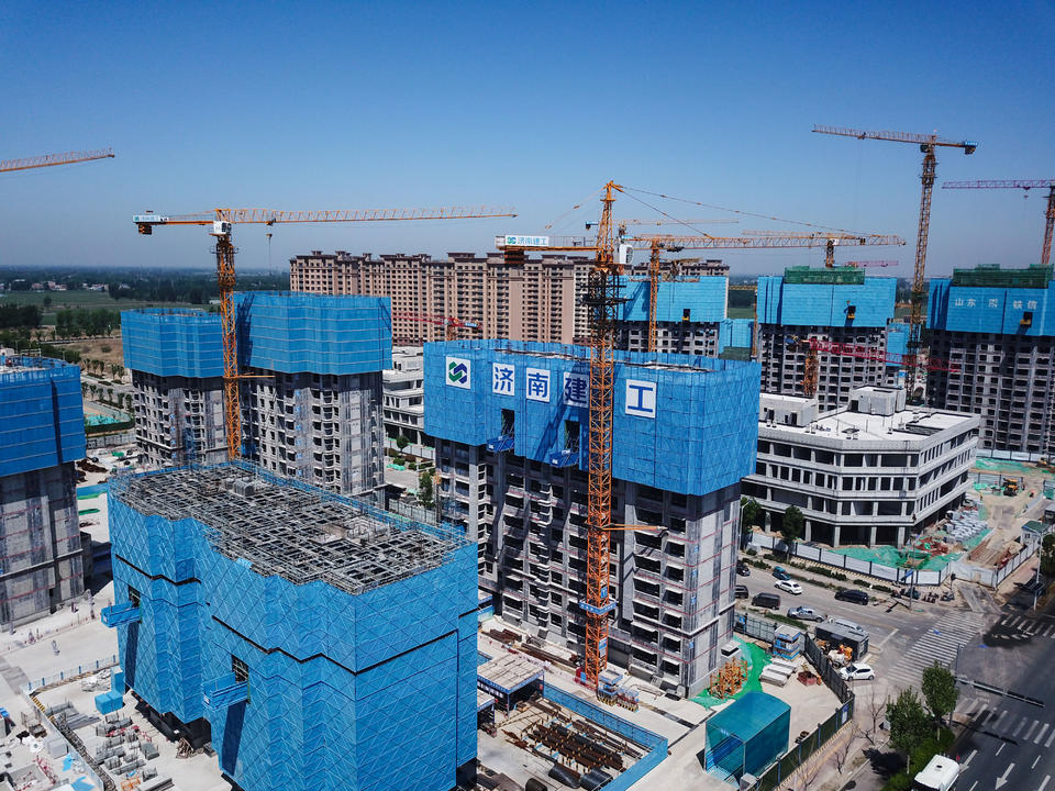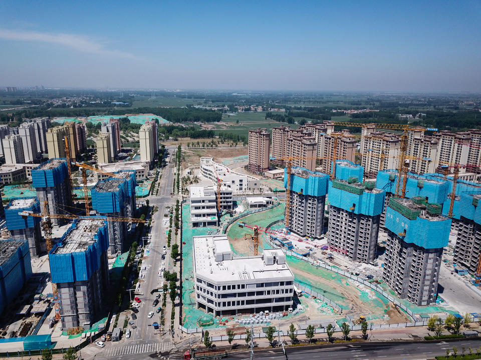 五一假日,航拍济南起步区大桥组团西部的总部经济区。西侧的大批居民安置楼和教学、体育设施已经启用,东部又一批新的住宅楼崛起。